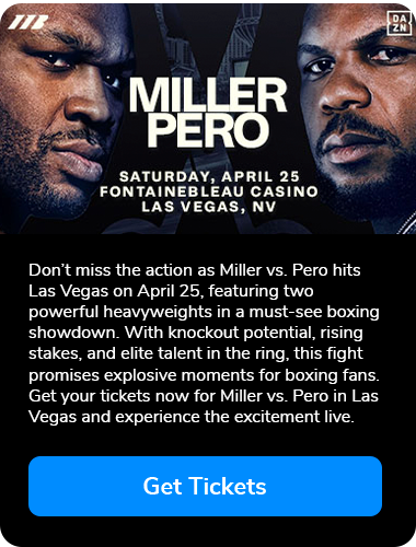 Don't miss the action as Miller vs. Pero hits Las Vegas on April 25, featuring two powerful heavyweights in a must-see showdown. With knockout potential, rising stakes, and elite talent in the ring, this fight promises explosive moments for boxing fans. Get your tickets now for Miller vs. Pero in Las Vegas and experience the excitement live.